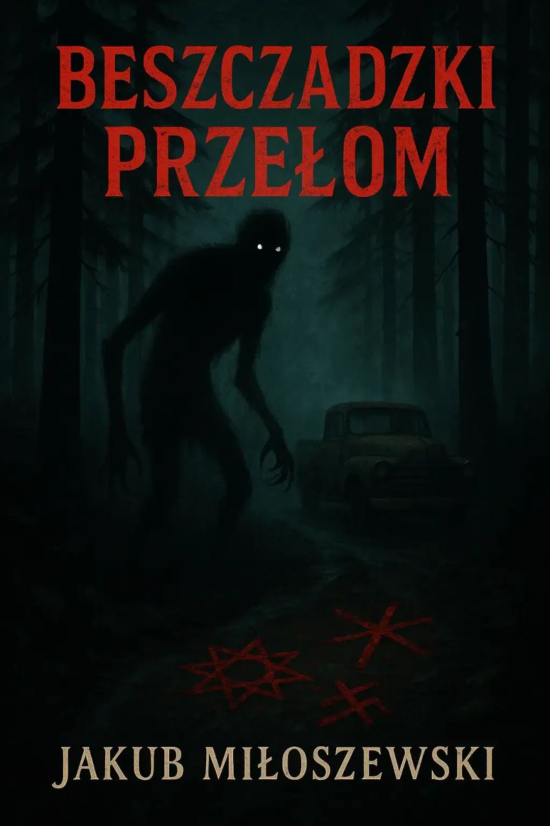 W sercu dzikich Bieszczad, gdzie granica między Polską, Ukrainą i Słowacją splata się z mgłą i mrokiem, leży tajemnica, która nie pozwala zasnąć. Gdy na odludnym przełęczu odnaleziono ciężarówkę pełną martwych migrantów, jedno ciało wyróżniało się spośród innych – rozszarpane nieludzkimi pazurami, pokryte starożytnymi, słowiańskimi symbolami. Stołeczna inspektor Ewa Wojcik, kobieta z krwi i kości, nie wierzy w bajki. Ale miejscowy leśniczy, Antek Kowal, zna opowieści o Lesawce, demonie strzegącym gór, który żąda krwi za naruszenie świętych granic. Gdy śledztwo prowadzi ich do opuszczonej kopalni, gdzie las szepcze o dawnych rytuałach, granica między rzeczywistością a koszmarem zaczyna się zacierać. Czy to brutalna gra przemytników, psychopata bawiący się w rytuały, czy może przełęcz naprawdę ożyła? „Beszczadzki Przełom” to mroczny kryminał z elementami folkowego horroru, który wciąga jak beskidzka mgła i nie puszcza aż do ostatniej strony.