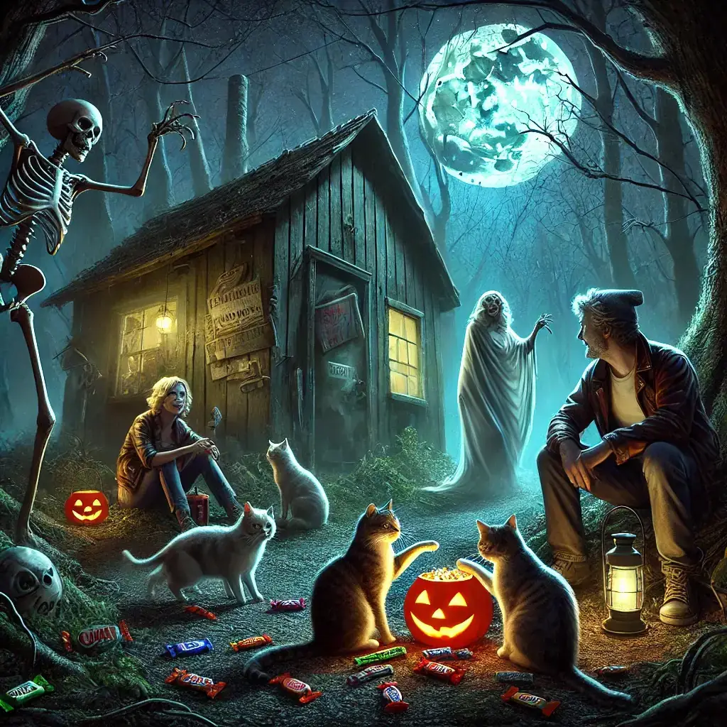 A haunted getaway turns into an unforgettable Halloween when Jack and Andrea, along with their quirky cats, encounter mischievous spirits in a spooky old shack. Instead of terror, they find joy as ghosts and skeletons dance, laugh, and crave candy! With moonlit antics, ghostly treats, and eerie revelry, fear melts into a night of laughter and friendship. Join Jack, Andrea, and their spectral friends in "Moonlit Mischief"—where Halloween is reimagined as a celebration of the strange and spirited!