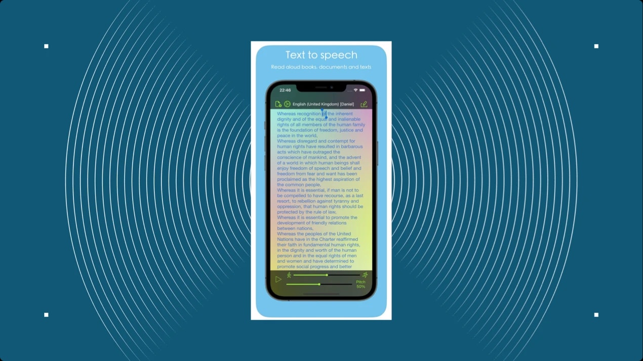 NaturalReader is a versatile text-to-speech app that converts different text formats such as PDFs, Word documents, and eBooks into spoken words. It supports over 50 languages and offers more than 200 AI voices, including multilingual and content-aware options. This read aloud app for iOS allows users to adjust reading speed and voice selection, providing a customizable listening experience. Additionally, it features a Pronunciation Editor to improve voice quality and acronym reading.