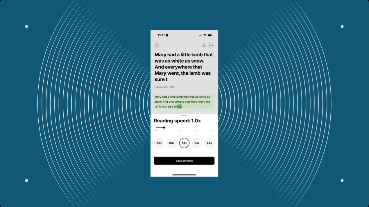 Adjust the playbackWhile listening, you can adjust the reading speed, skip forward or backward, and change the voice if needed using the controls at the bottom of the screen.
